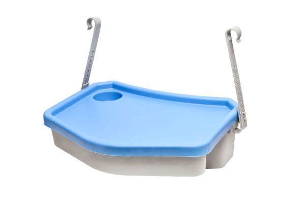 - המגש ומיכל נפרדים, אשר ניתנים להנחה על הברכיים